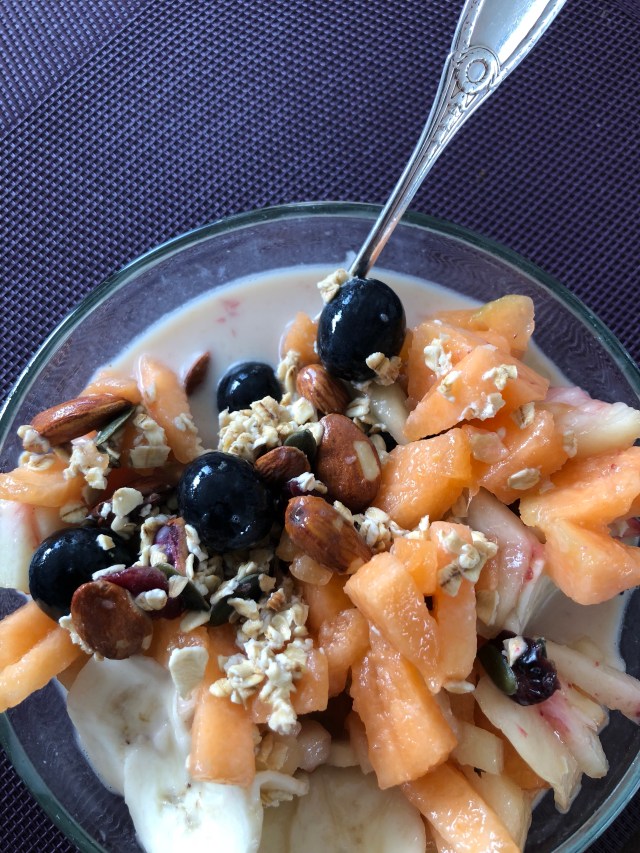 Après un petit-déjeuner délicieux par mon namoureux concocté, mixant fruits frais, fruits secs, graines et céréales, j’étais en forme pour la journée.