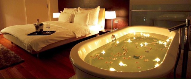 Par ailleurs et nonobstant le luxe apparent, je suis tout à fait sceptique – une vraie sceptique, oui – quant aux bougies odorantes flottant dans la baignoire. Fut-elle XXL – la baignoire, oui. C’est un coup à se brûler à un endroit bien placé et voilà la pièce parfumée autrement qu’au jasmin patchoulisé.