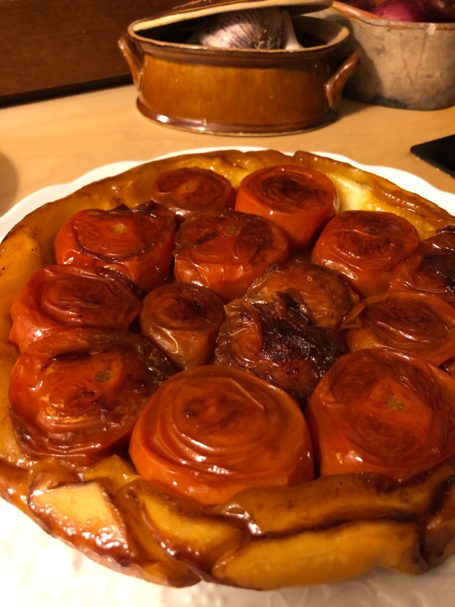 Oui, vous avez bien lu : tarte tatin de tomates ! Une recette originale, toute nouvelle pour moi. Éprouvée et approuvée !