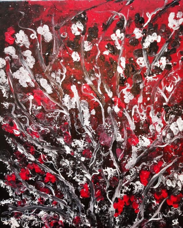 Illustration : Sandy Koegler, « L’Arbre à Mots », acrylique sur toile coton, 30×40