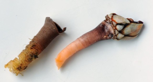 Ce sont des pouce-pieds, crustacés cirripèdes marins à pédoncule charnu et court, qui vivent fixés aux rochers battus par les vagues. L’orthographe varie : pouce-pied ou pousse-pied, l’un ou l’autre s’écrit ou s’écrivent.