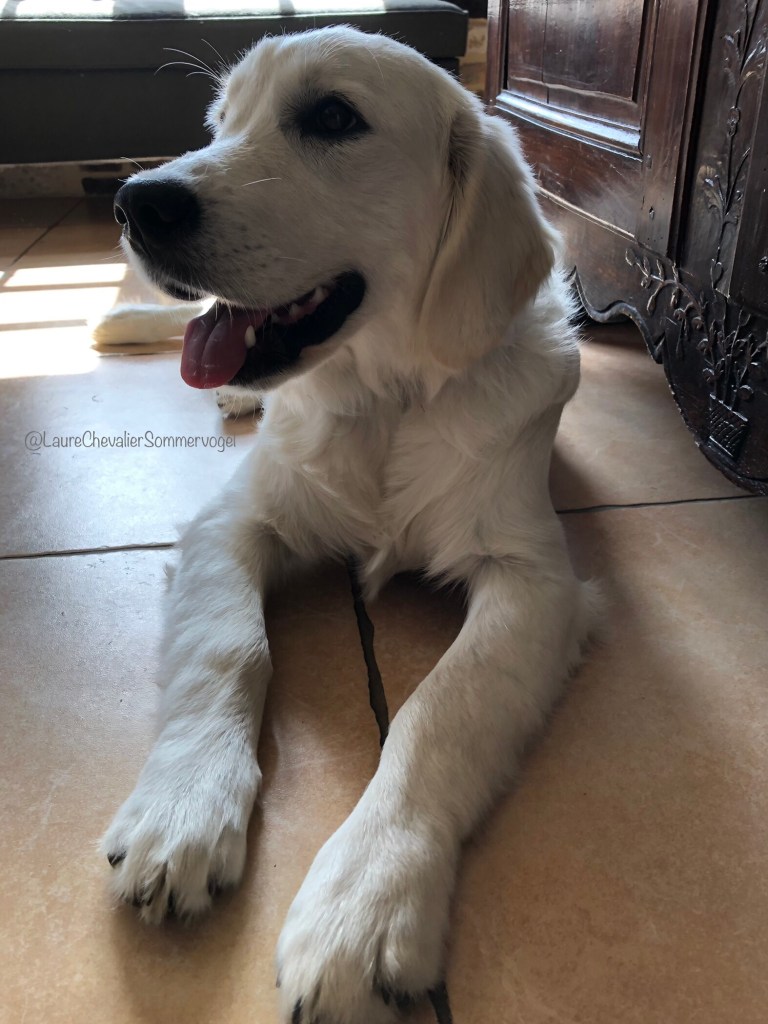 Quand se discute autour de la table familiale les réactions de notre tout jeune chien de bientôt six mois, que j’entends mon namoureux affirmer que le golden retriever cherche à faire plaisir à ses maîtres et que rien ne le rend plus heureux que de correspondre à ce que l’on attend de lui ;