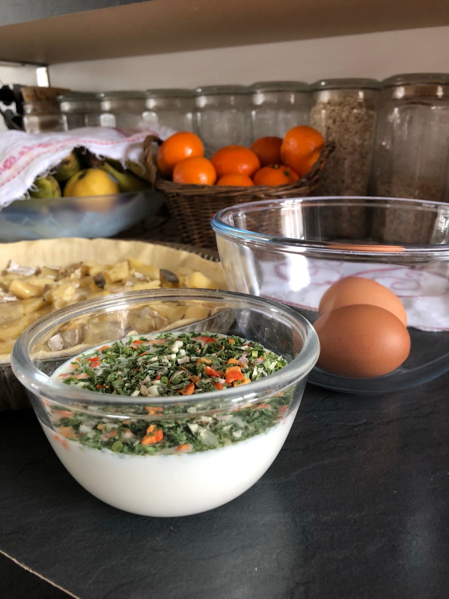Migaine à l’œuf battu avec du lait et des fines herbes à la provençale